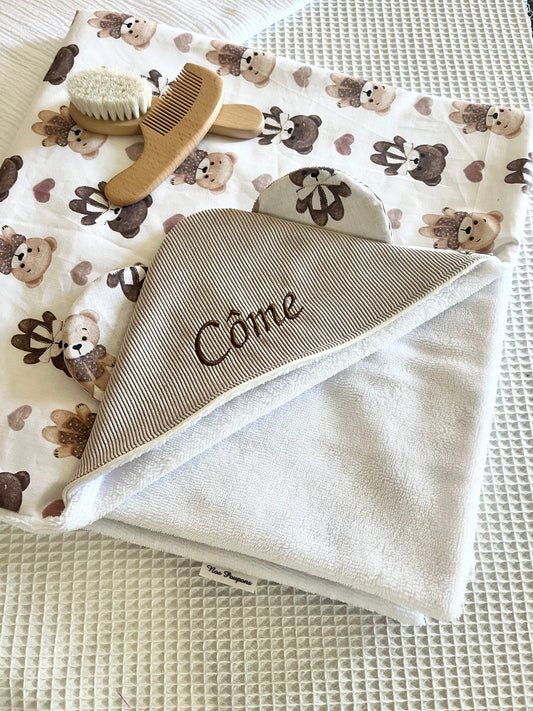 • Nos Poupons - cape de bain, cape de bain en éponge de bambou, cape de bain bébé, cape de bain personnalisable